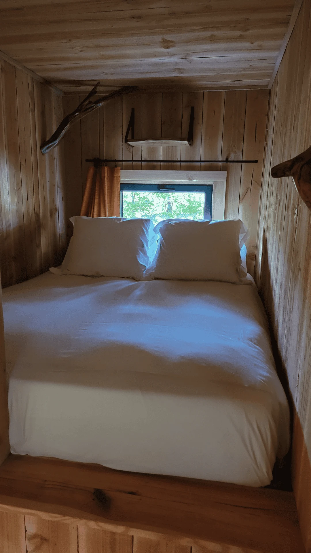 Il n'y a pas de douche dans cette cabane. Découvrez la cahutte (à moins de 5 min à pied), où se trouvent les salles de bains individuelles équipées des cabanes Ambre et Colorado.