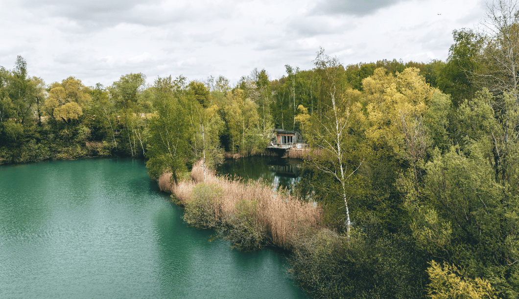 Le domaine des Cabanes de La Réserve s’organise autour de trois plans d’eau et d’une vaste forêt. Les cabanes sont réparties pour préserver l’intimité de chacun : certaines perchées dans les arbres, d’autres au bord de l’eau, d’autres encore sur pilotis face aux étangs turquoise. Depuis la terrasse ou les grandes baies vitrées, la nature est partout : oiseaux, lumière changeante sur l’eau, bruits de la forêt.