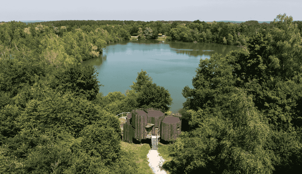 Aux Cabanes de La Réserve, le domaine s’étend sur 35 hectares entre étangs, clairière et forêt, en lisière de la forêt de Laigue et de la forêt de Compiègne, avec trois plans d’eau bordés de bouleaux, de saules et de roseaux. À quelques kilomètres de Compiègne et à 1h15 de Paris, le changement de saison se ressent très vite : la lumière se fait plus douce, les chants d'oiseaux plus présents.